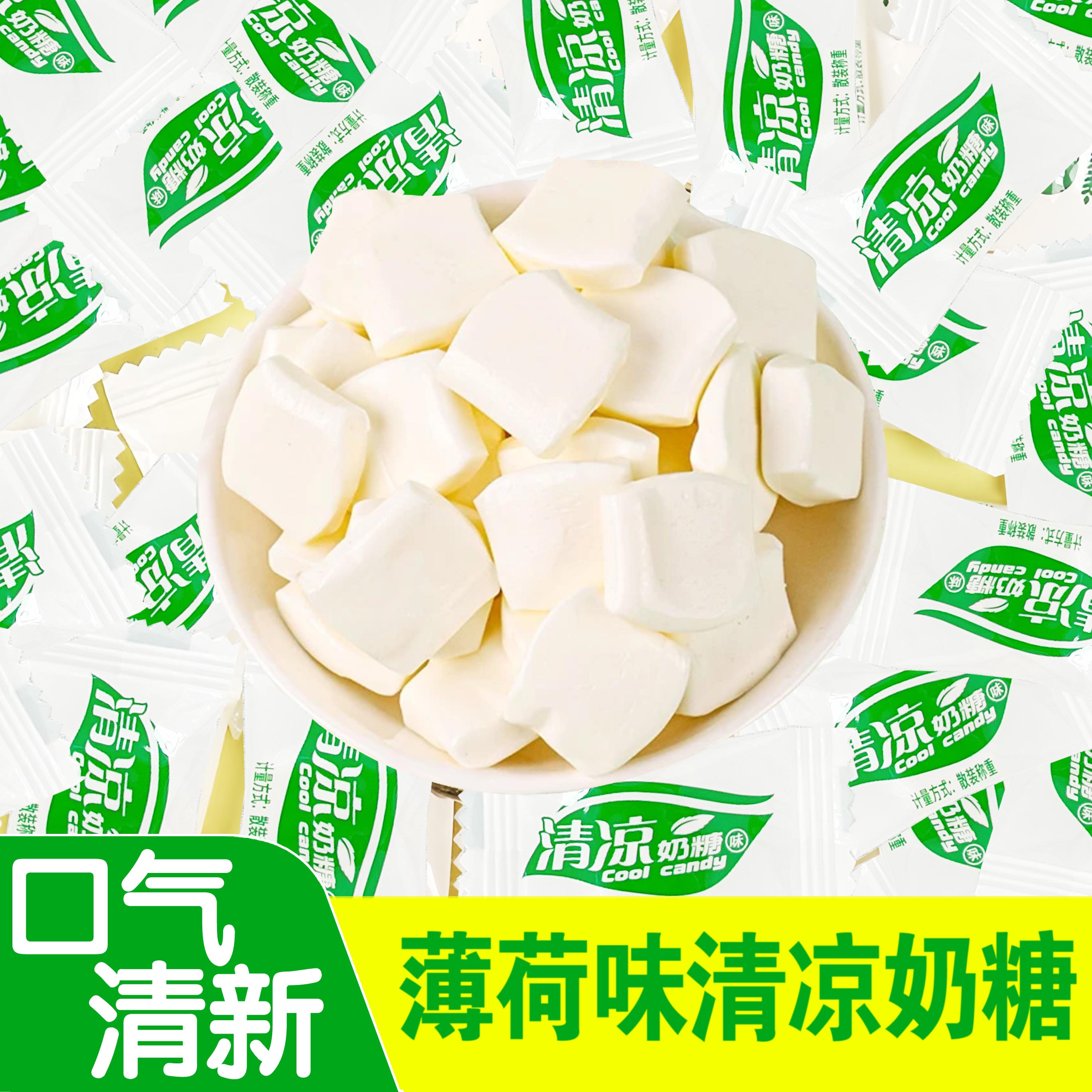 清凉奶糖薄荷味冰凉清爽奶片糖果软糖怀旧儿童零食