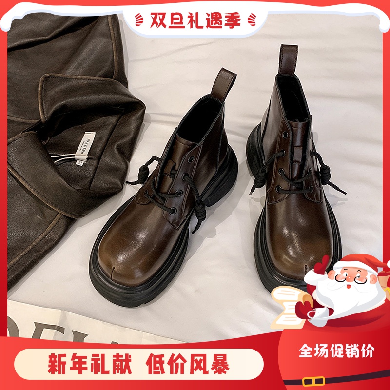 马丁靴女款2023秋冬新款真皮复古英伦风靴子炸街银色短靴骑士靴