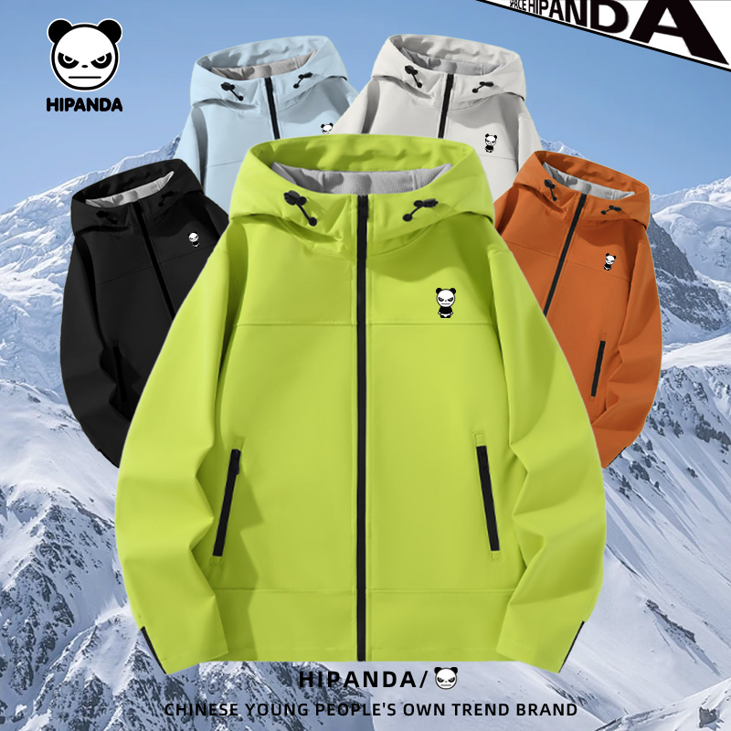 HiPanda你好熊猫软壳户外防水冲锋夹克秋季情侣款连帽登山夹克潮