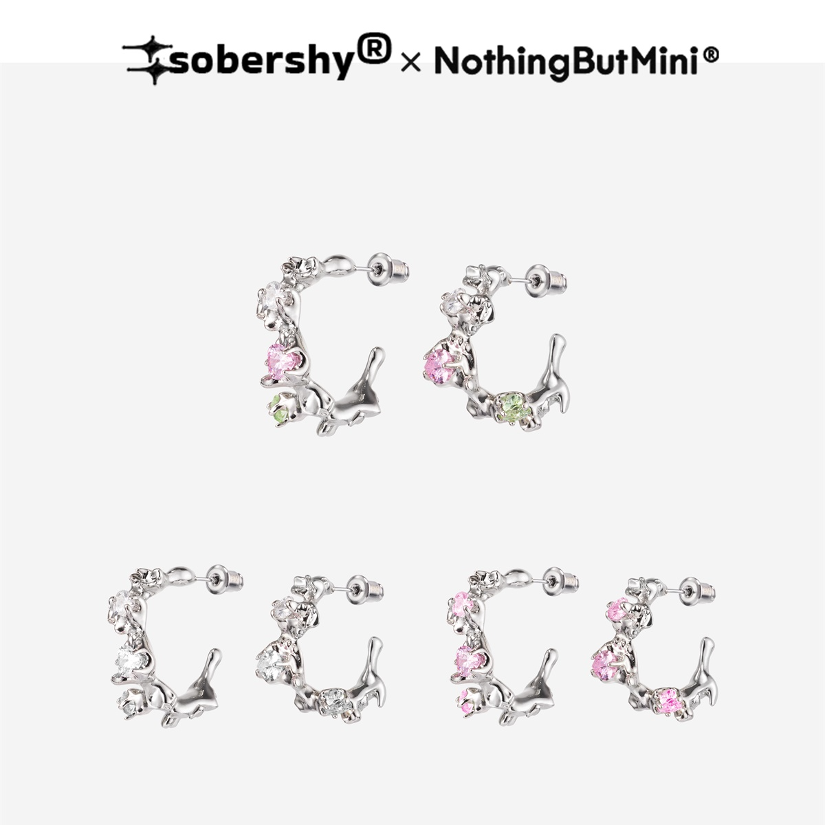 NothingButMini 铜合金锆石耳饰 爱心熔岩耳环简约ins甜酷