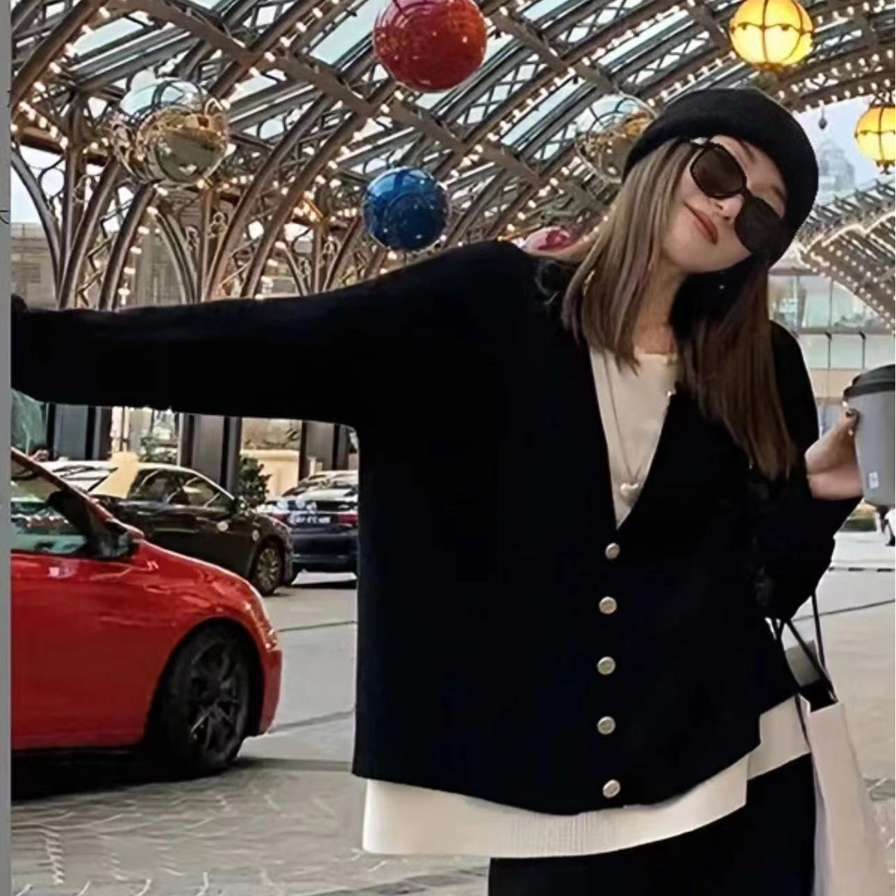 (1051)2024秋季新款大码宽松显瘦遮肉假两件针织毛衣慵懒风上衣女
