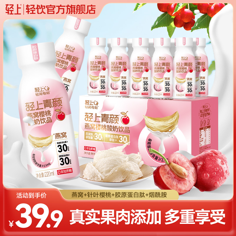 轻上 燕窝樱桃酸奶饮品特添烟酰胺高颜值多巴胺好喝早餐代餐饮料