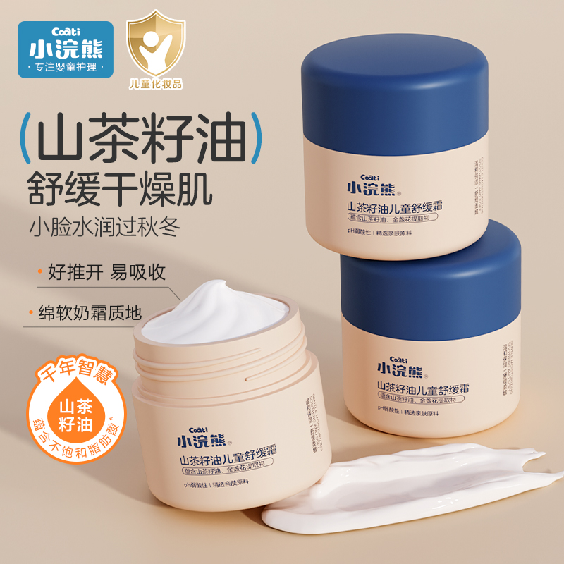 小浣熊儿童面霜婴幼儿宝宝保湿补水舒缓霜青少年山茶油擦脸乳50g