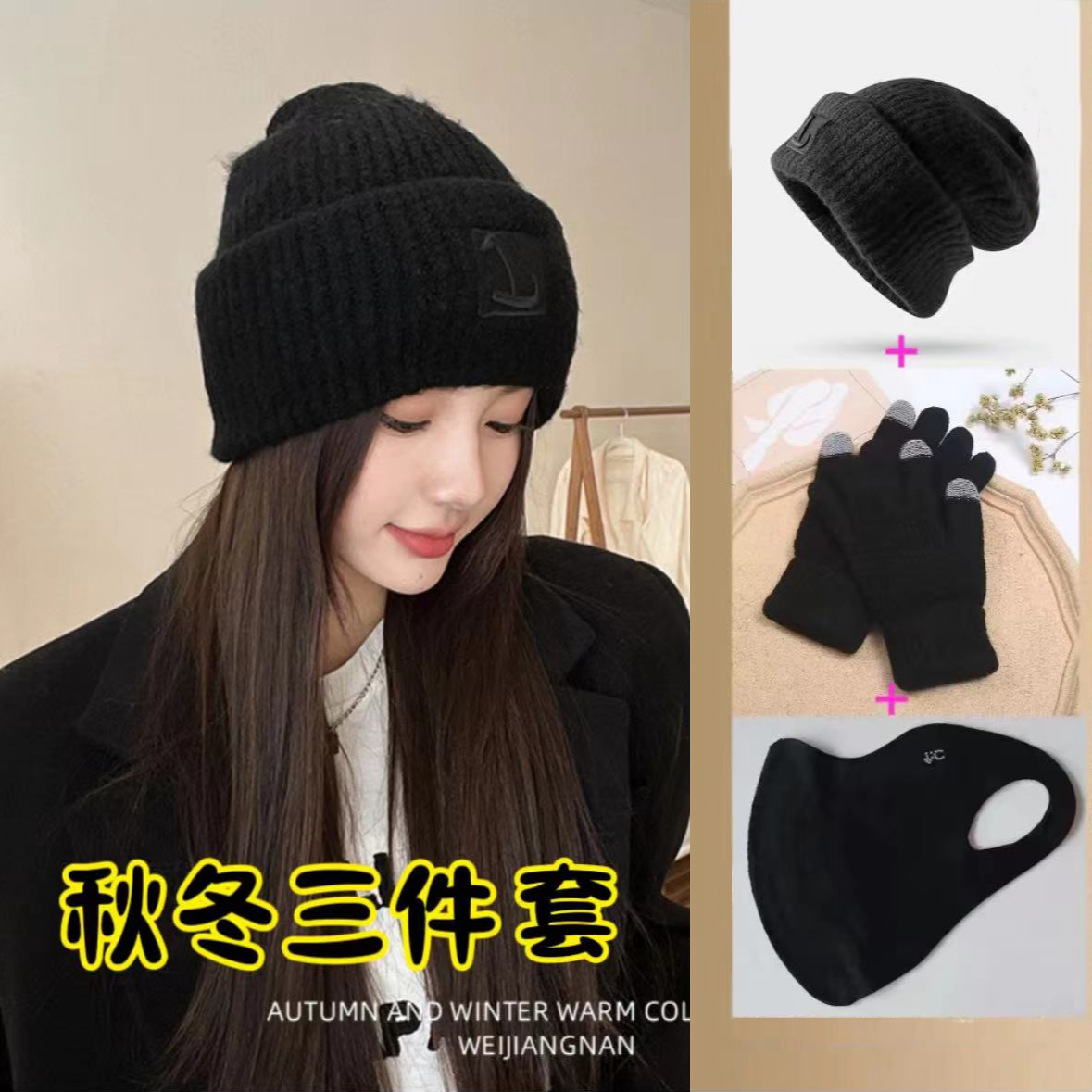 【秋冬防寒三件套】音符帽+德绒口罩+触屏手套保暖防寒户外出行套装