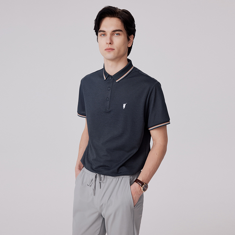 POLOWALK男士通勤夏季新款藏青简约时尚翻领短袖polo衫W4220474