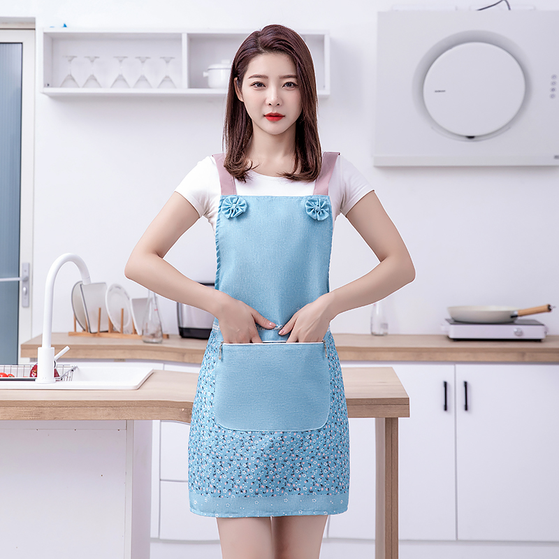 1新款背带厨房家用休闲风碎花常规围裙印染小清新防污防油适中