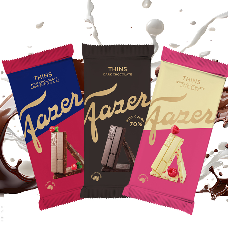 芬兰进口Fazer菲泽70%黑巧克力覆盆子夹心白巧蔓越莓牛奶巧克力块