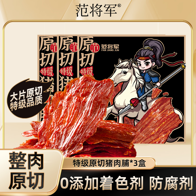 【3盒】范将军原切纯猪肉脯干特级大片高蛋白靖江特产休闲零食新鲜