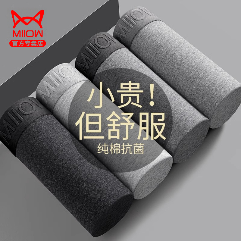 MiiOW/猫人男士内裤纯棉四角短裤头抗菌透气男生大码运动舒适夏季