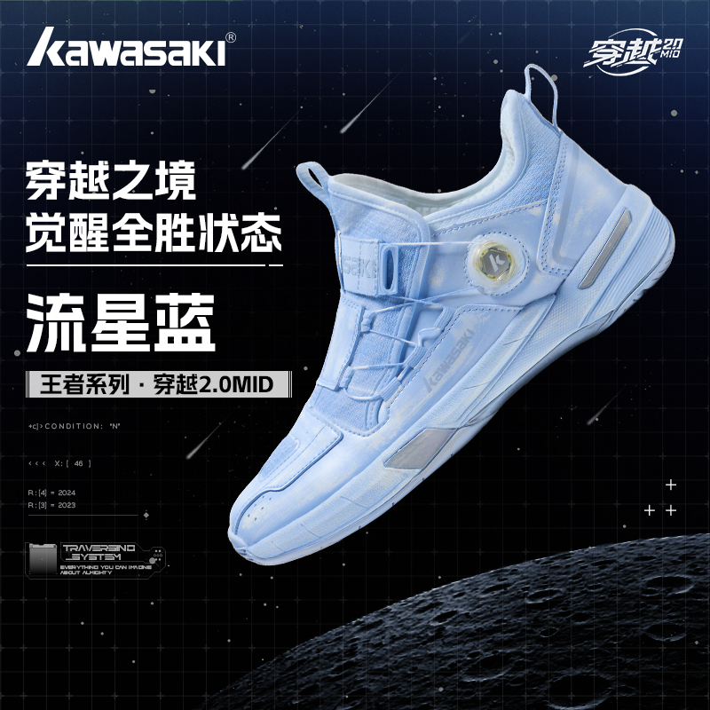 kawasaki/川崎专业羽球鞋 穿越2.0Mid典藏版防滑缓震耐磨自动旋扭