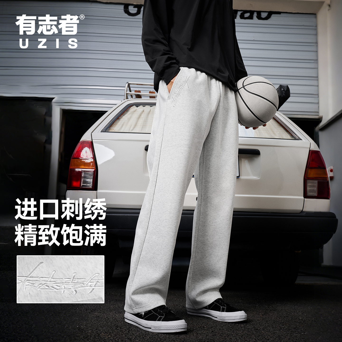 有志者UZIS火苗美式运动长裤男篮球跑步针织休闲有志青年直筒裤子