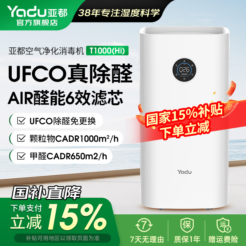 亚都空气净化器T1000(Hi) 家用数显分解甲醛去除烟味粉尘菌负离子
