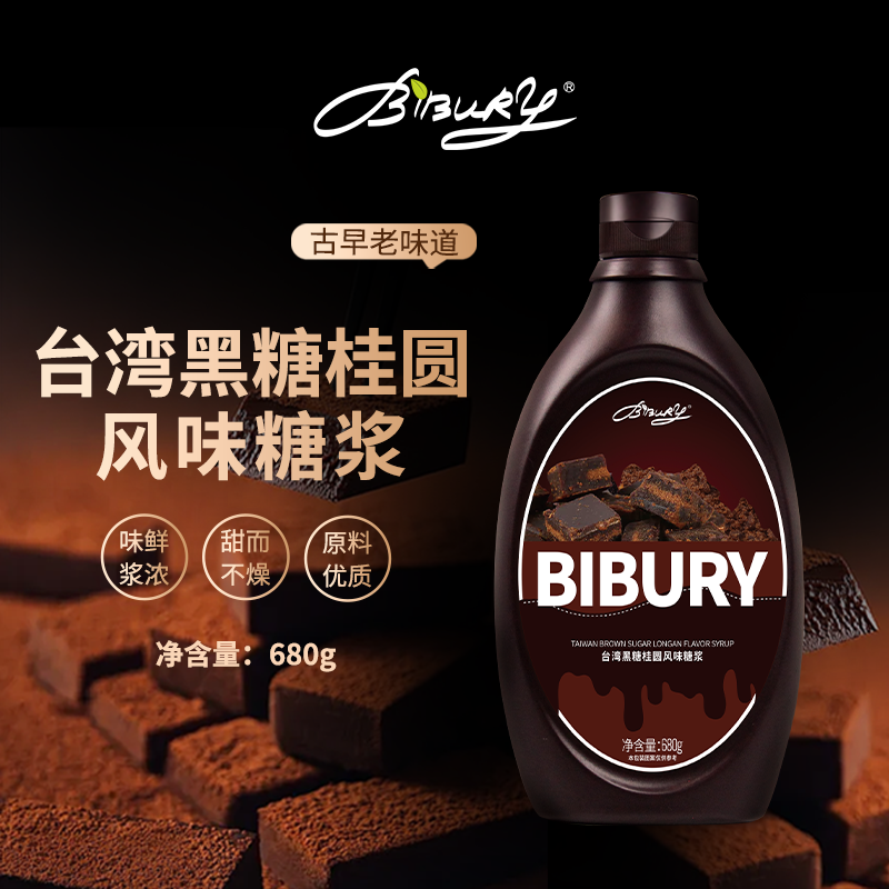 Bibury/拜伯里台湾黑糖桂圆风味糖浆680g装黑糖酱秋冬脏脏茶必备