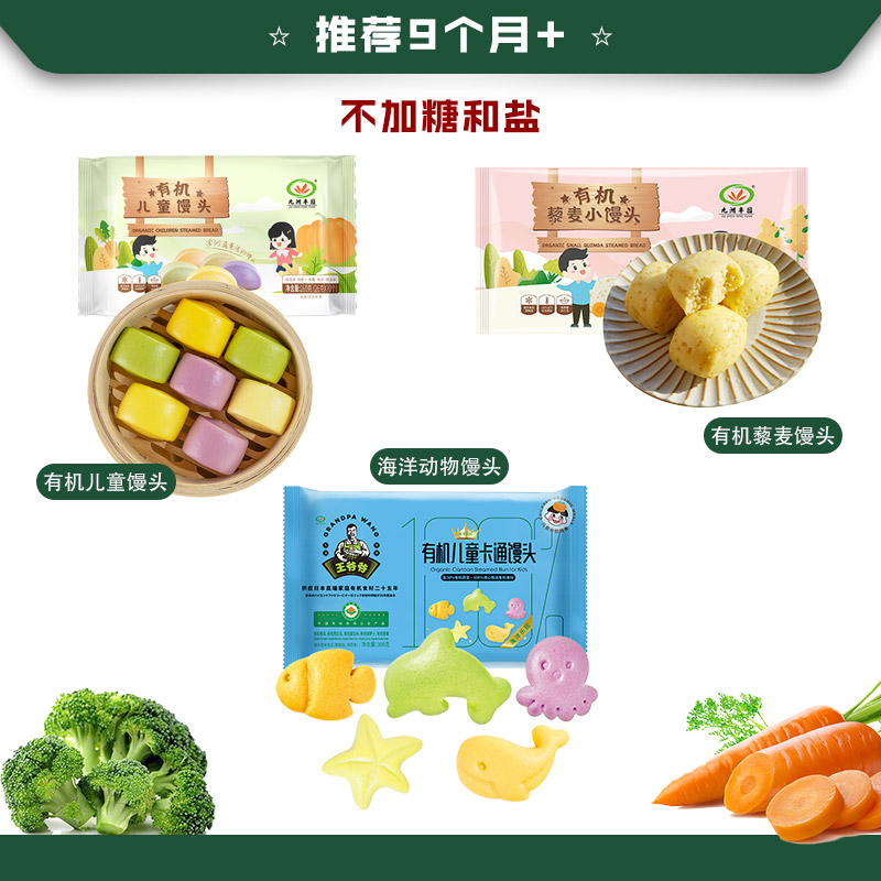 【胖丁妈妈专属】九洲丰园不加糖蔬菜泥有机儿童馒头组合宝宝套餐
