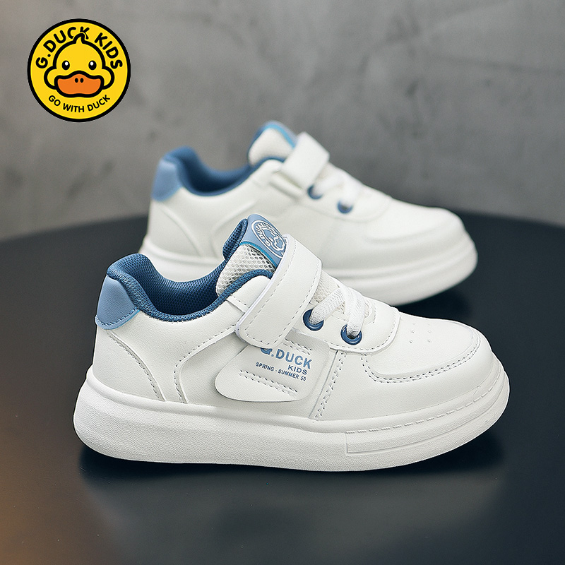 小黄鸭童鞋男童鞋春秋2025新款皮面防水儿童小白鞋女孩白色运动鞋