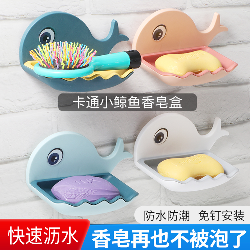 【拍一发三】创意小鲸鱼肥皂盒免打孔卫生间快速沥水壁挂式香皂盒