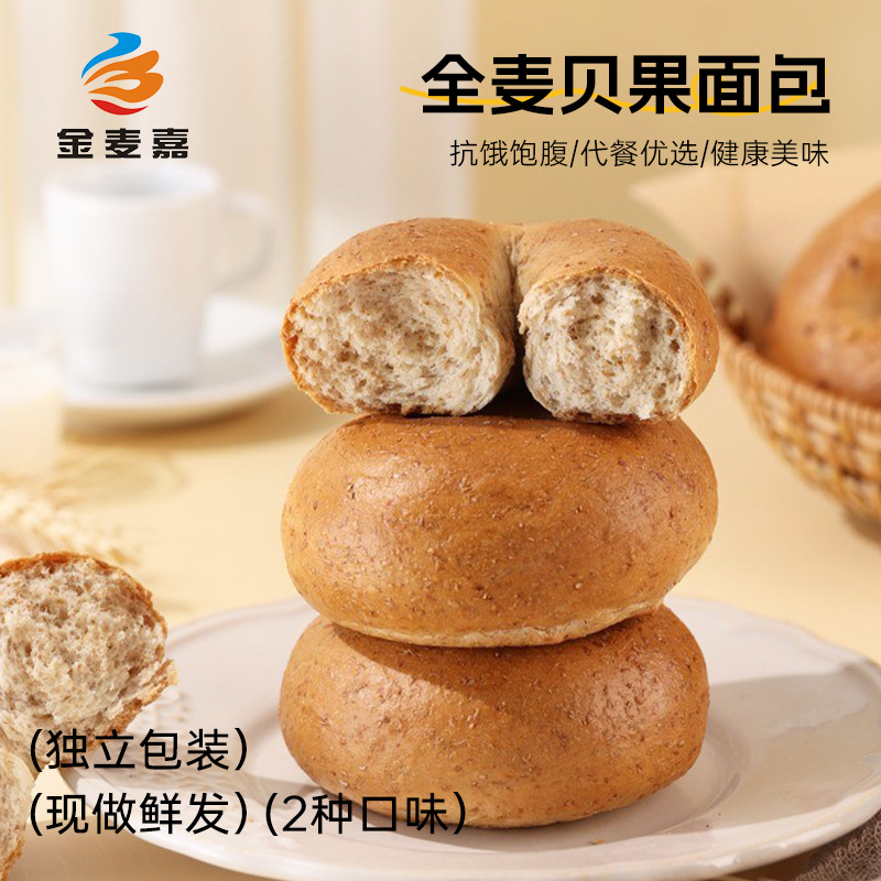【金麦嘉】贝果全麦面包饱腹感面包圈食用早餐面包 70g
