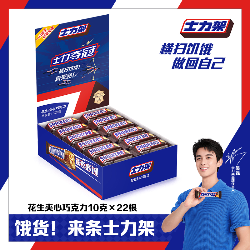 Snickers/士力架牛奶花生夹心巧克力10g*22根办公室充饥零食BY
