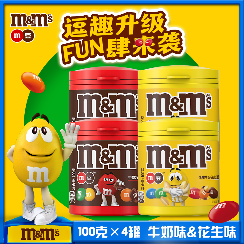 M&M's/MM豆牛奶巧克力100g瓶装*4到手4瓶零食糖果m豆