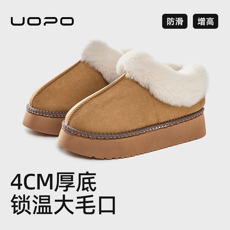 东北外穿厚底雪地靴时尚复古加绒加厚保暖百搭防滑一脚蹬棉鞋锁温