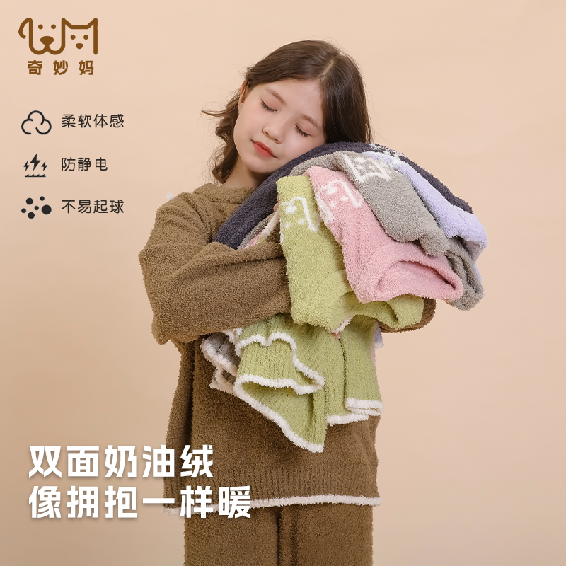 升级无静电~半边绒儿童睡衣女孩珊瑚绒睡衣女童加厚加绒睡衣男童