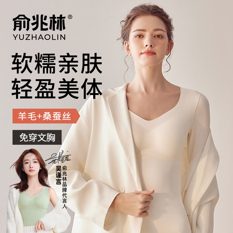 俞兆林无痕保暖内衣女自带胸垫冬季低领打底衫显瘦修身秋衣