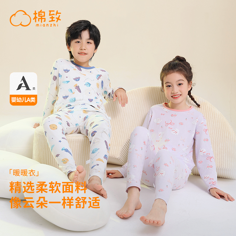 【到手2套】棉致儿童秋衣秋裤男童女童莱卡内衣套装宝宝睡衣家居服
