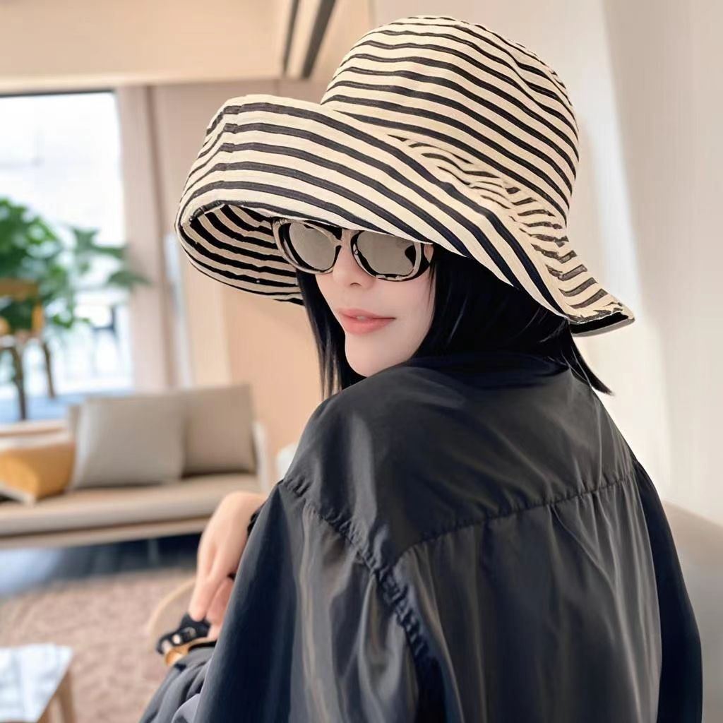 韩版春夏季户外出游时尚百搭条纹帽渔夫帽可折叠遮阳帽防紫外线