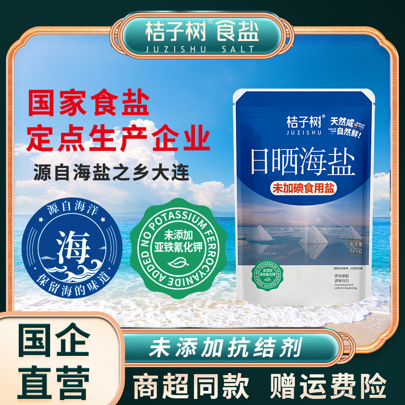 【桔子树】日晒海盐 未加碘320g*6袋 天然鲜无抗结剂调味食盐健康
