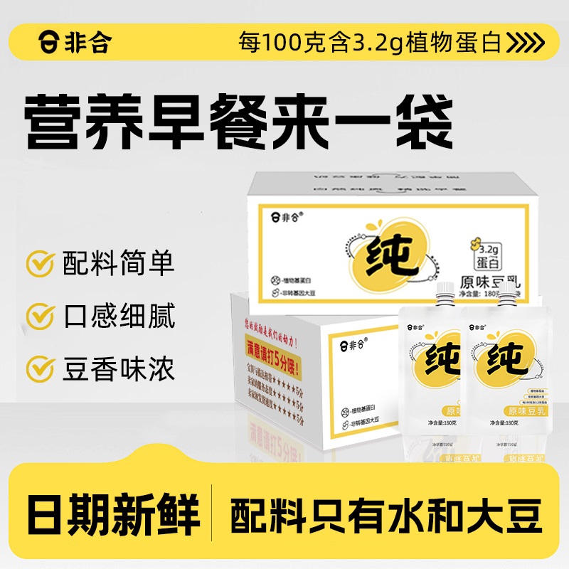 非合【试喝】原味豆乳豆浆豆奶0添加蔗糖早餐冲饮非转基因蛋白3.2