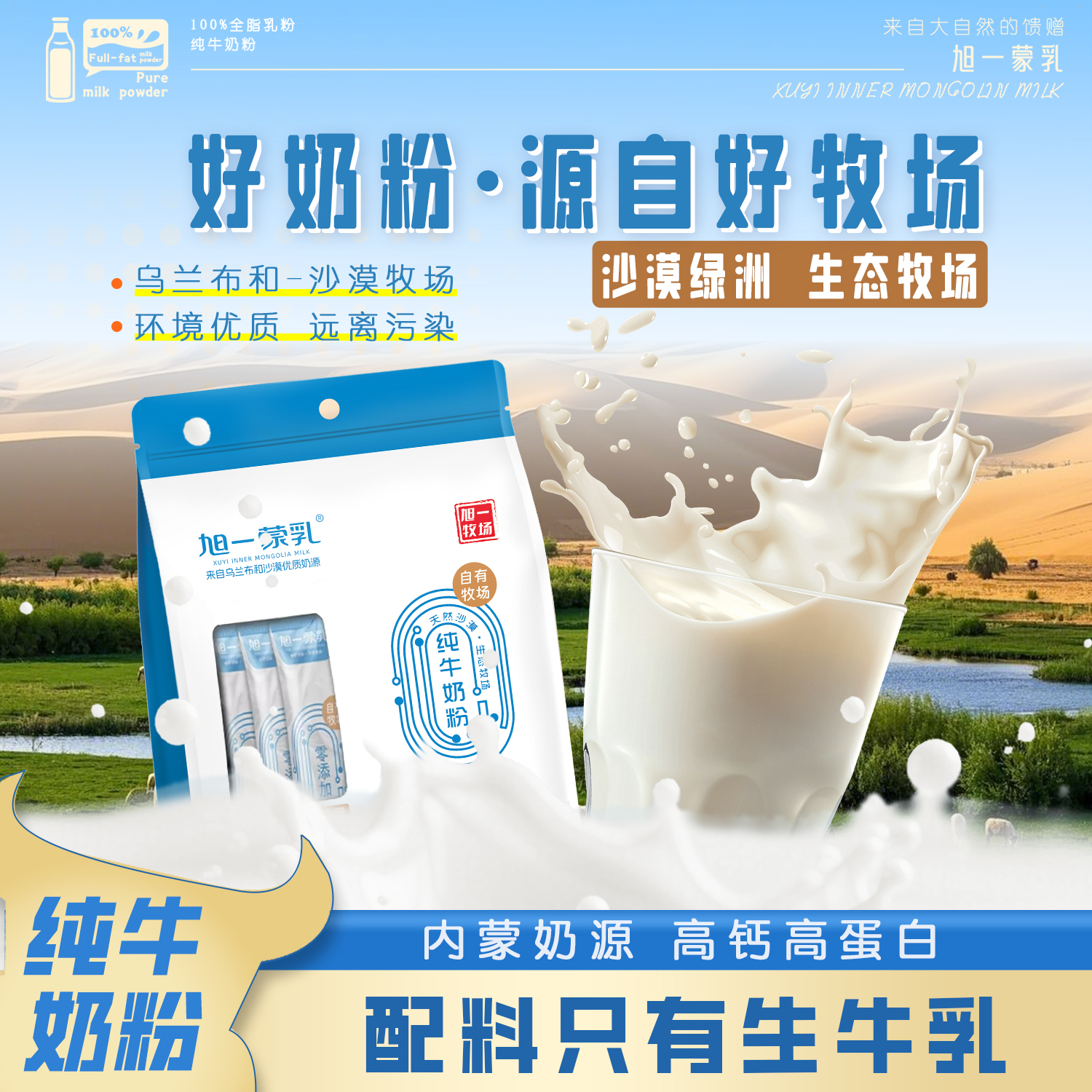 旭一蒙乳内蒙古草原纯牛奶粉 配料仅生牛乳 高钙高蛋白营养早餐