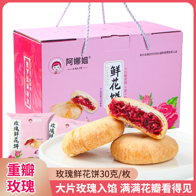 阿娜姐云南特产玫瑰花饼解馋办公室零食30gX30枚礼盒装开袋即食