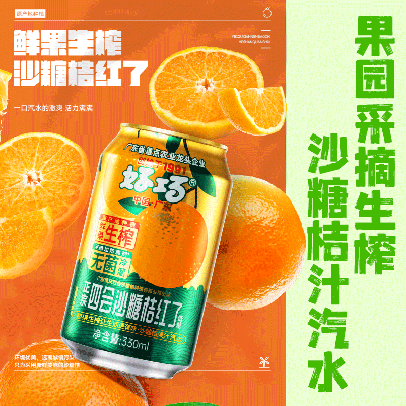 【低糖型】生榨沙糖桔汽水330ml网红高颜值夏日必备冷饮