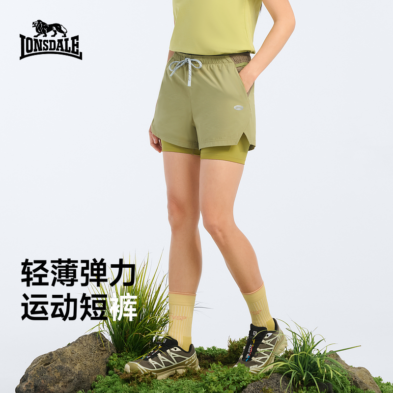 龙狮戴尔户外瑜伽运动短裤女跑步健身休闲裤露营溯溪假两件短裤女