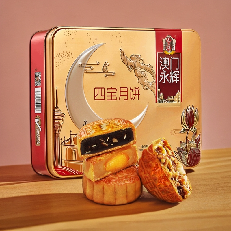 澳门永辉广式月饼四宝月饼500g(125g*4个/盒)中秋节礼盒装