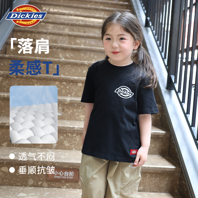 Dickies童装夏季儿童圆领T恤纯棉短袖女童男童舒适透气运动欧若风