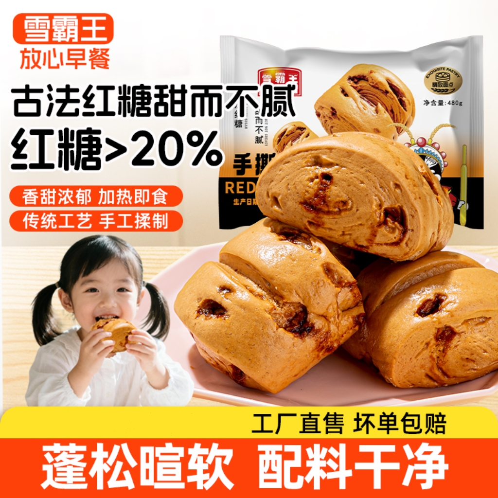雪霸王传统红糖馒头劲道面包6个 严选香醇手工营养速食度假早餐