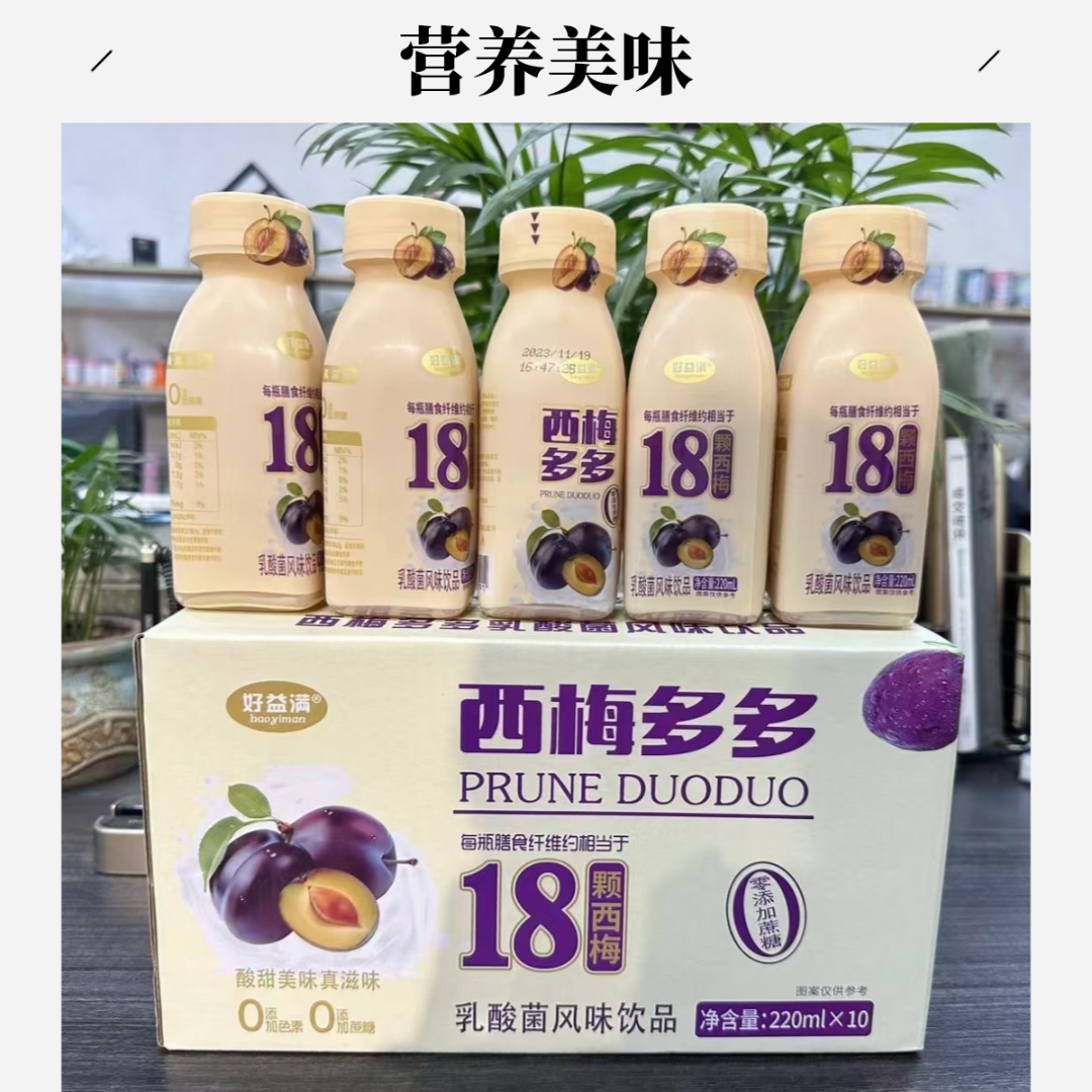 【10瓶整箱】0蔗糖西梅饮料益生元膳食西梅多多纤维风味乳酸菌饮品