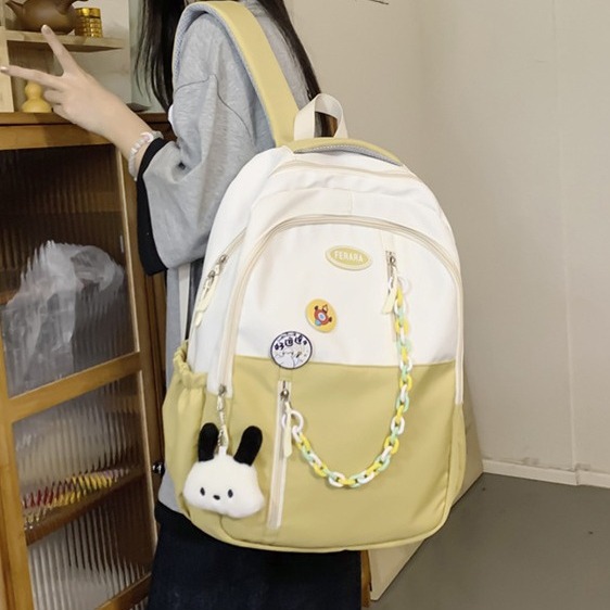 2025新款撞色韩版初中生书包清新甜美可爱轻便双肩包时尚小清新