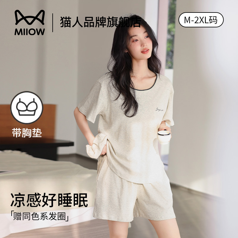 猫人带胸垫睡衣女夏季薄款舒适短袖2025新款凉感可外穿家居服套装