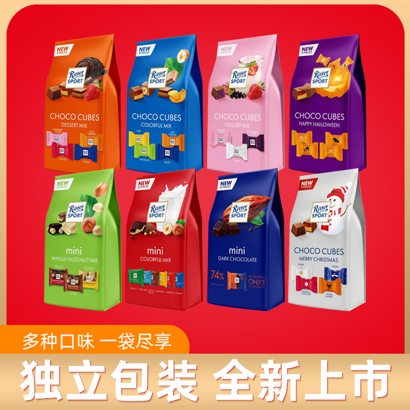 德国进口RitterSport瑞特滋迷你款夹心牛奶巧克力72g*3袋休闲零食