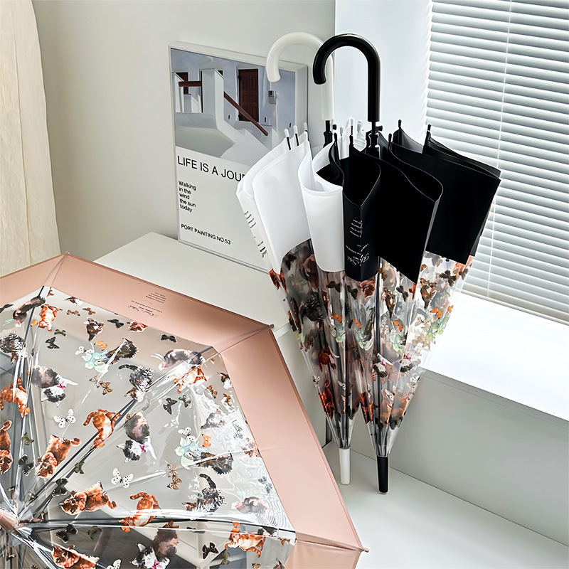 高端网红ins日系猫咪雨伞女生高颜值雨伞小清新透明雨伞自动长柄