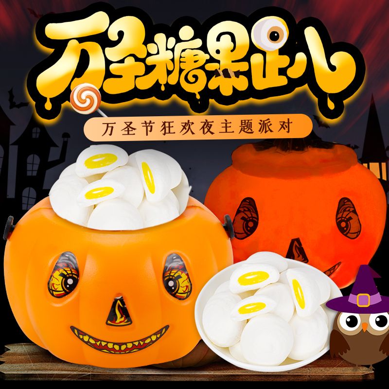 金稻谷 万圣节棉花糖儿童手提南瓜灯创意搞怪礼物鬼屋糖果罐