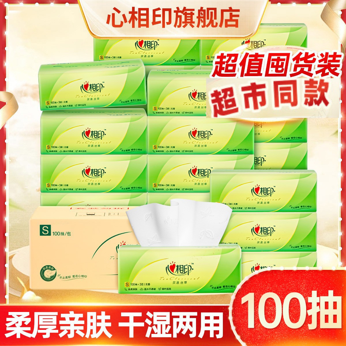 心相印茶语抽纸100抽家用卫生纸整箱批发实惠装抽纸纸巾餐巾纸