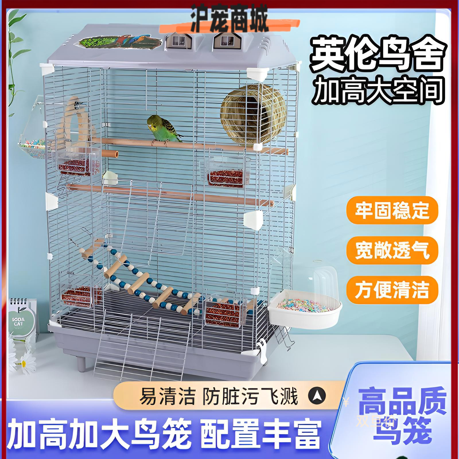 【沪宠商城】横丝金属观赏鸟笼虎皮牡丹鹦鹉家用大号别墅鸟笼子鸟舍