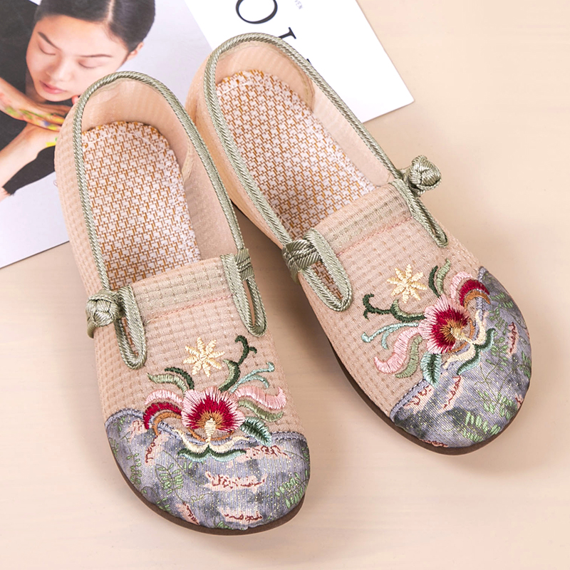 老北京布鞋女夏季中老年妈妈鞋一脚蹬透气网纱绣花鞋软底女鞋