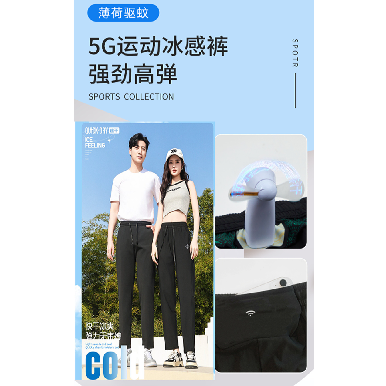 防蚊防臭5G冰感运动裤!夏季高弹快干冰爽透气薄款弹力休闲裤216-L