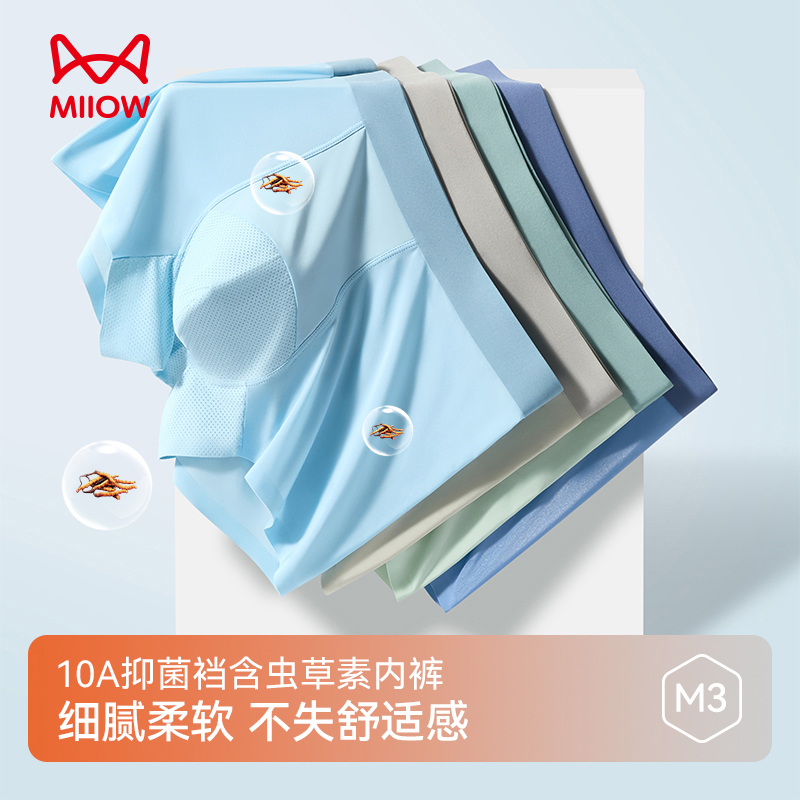 MIIOW/猫人冰丝凉感无痕男士内裤10A抑菌含虫草素底裆四角裤头D