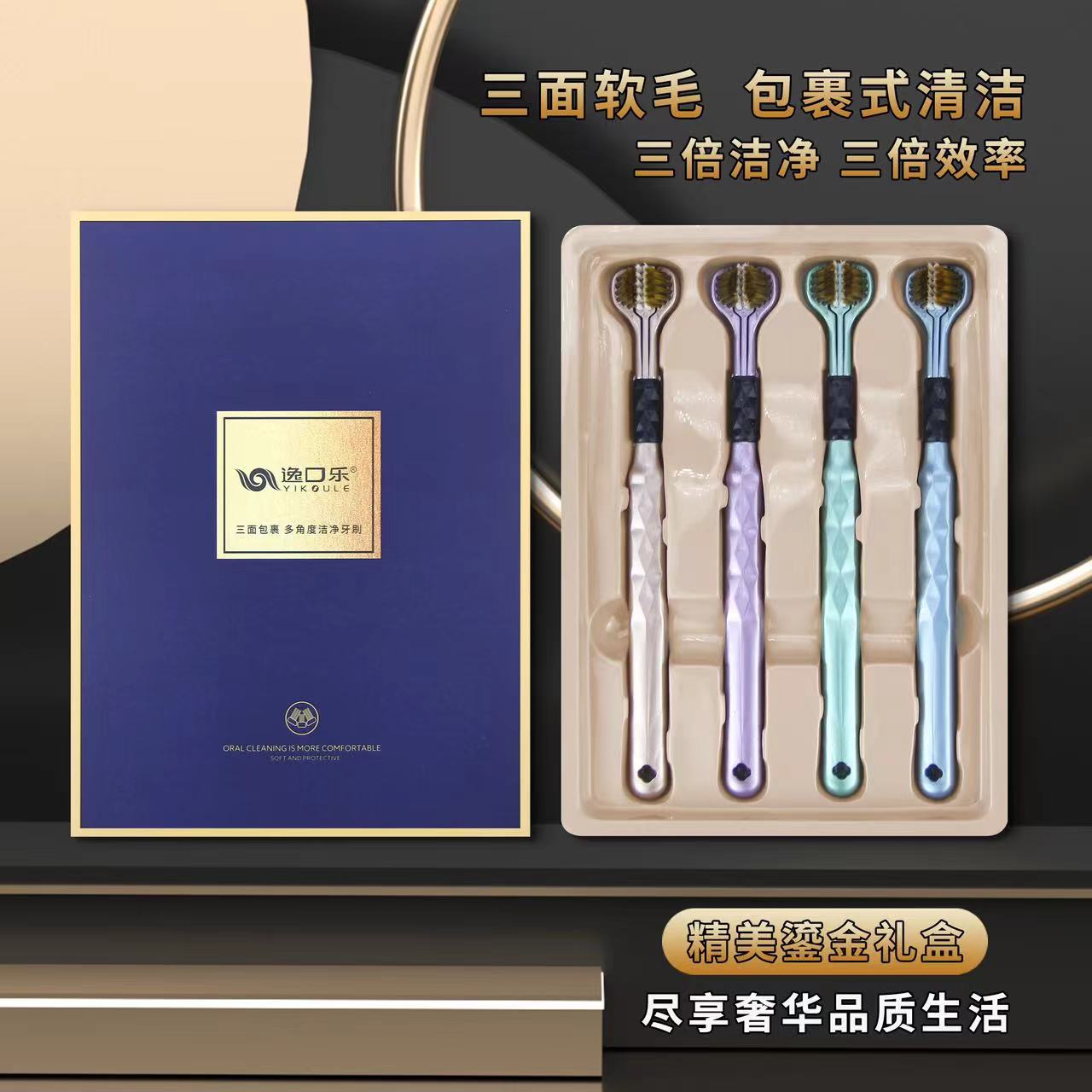 【4支360三面包裹式】情侣刷丝高档家用宽头护龈清洁舌苔礼盒装软毛