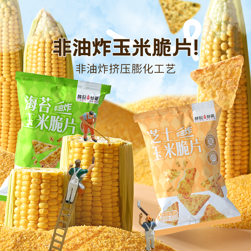 【达人】薛记炒货玉米脆片芝士味海苔味非油炸健康休闲小零食